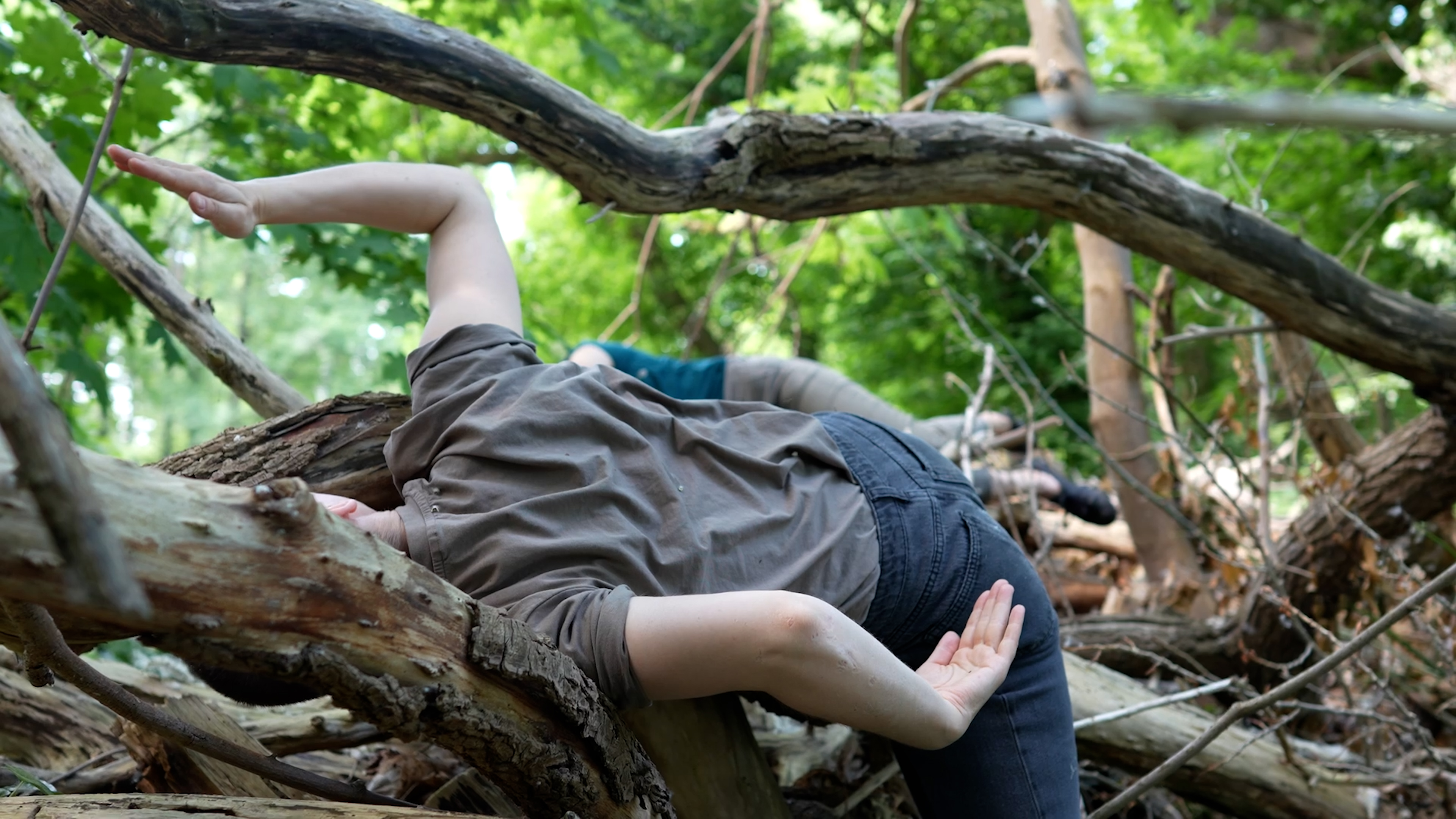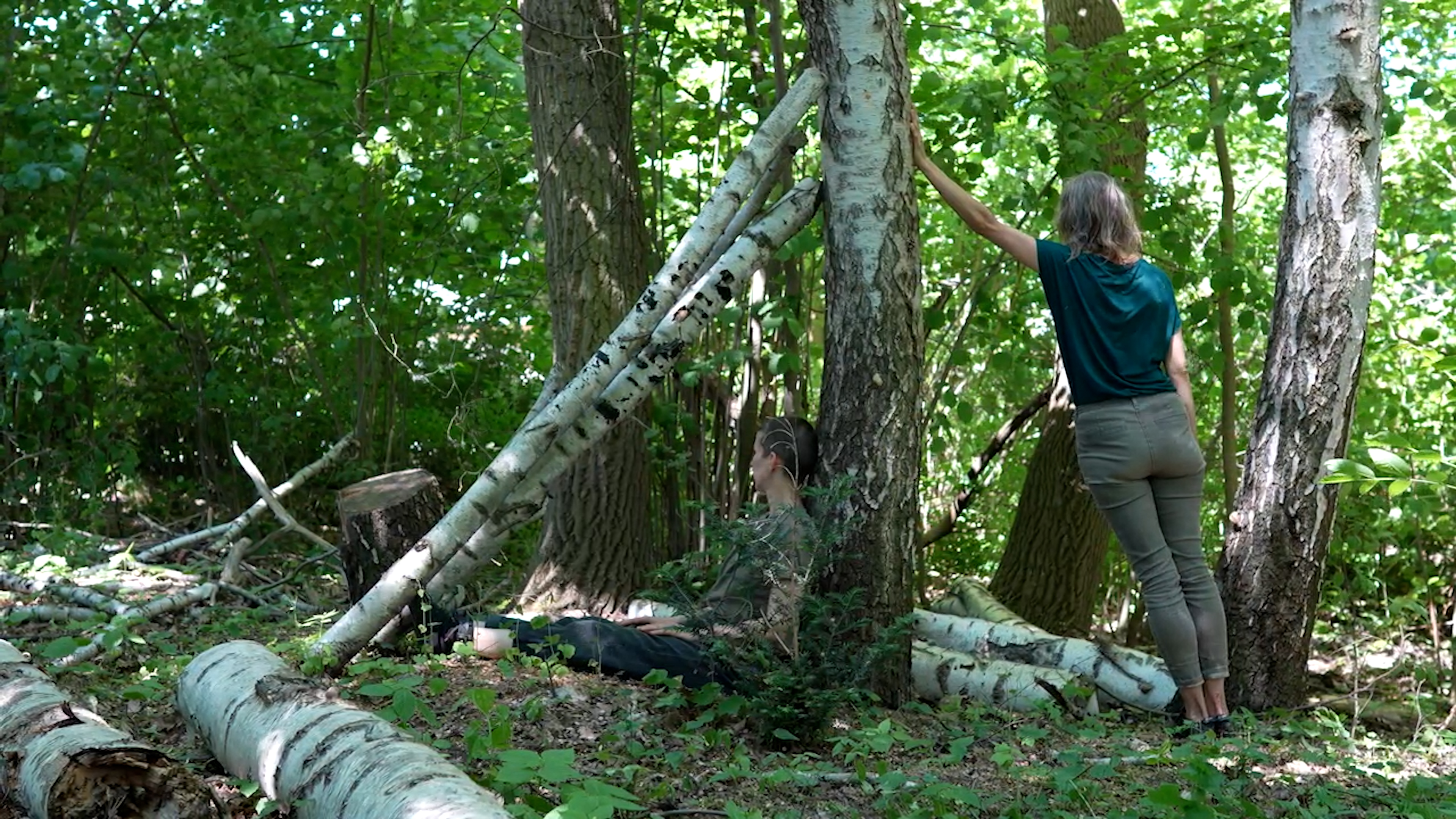 In Out of the Green ver_orten sich drei Frauen zwischen Ödnis und Wildnis irgendwo im ewigen Jetzt und unentwegtem Hier. Dabei finden sie sich in ständig wechselnden Strukturen wieder. Umgeben, umwuchert, umsponnen von diesen, begegnet dem Trio Alles in Allem.